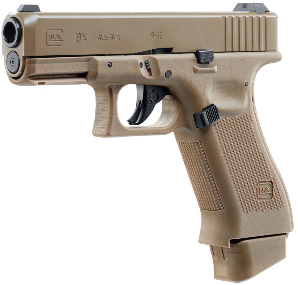 Новой особенностью является цвет Coyote. Эта лицензионная страйкбольная версия Glock19X от Umarex, работающая на CO₂, является аутентичной репликой, которая соответствует оригиналу в каждой детали. Особенности: УСМ двойного действия, металлический затвор с функцией Blowback.