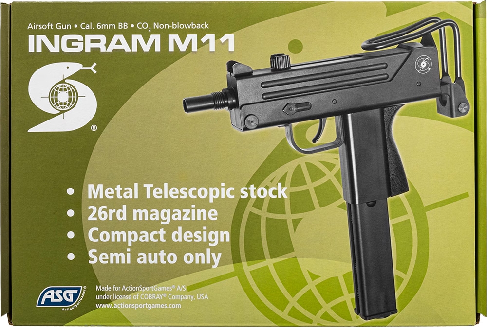 Модель COBRAY INGRAM M11 от ASG полностью лицензирована, поэтому на корпусе нанесены аутентичные маркировки.