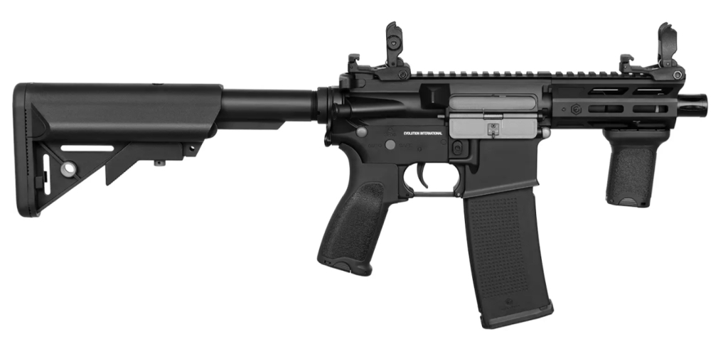 Серия Evolution Airsoft Combat Series сочетает лучшие качества AEG-приводов с современными инженерными решениями. Корпус из усиленного полимера Carbontech делает оружие прочным и лёгким, а модульная система цевья EMR позволяет легко устанавливать аксессуары. Усиленный гирбокс, стальные шестерни, прецизионный ствол 6,01 мм и мотор с высоким крутящим моментом гарантируют стабильность и точность стрельбы.