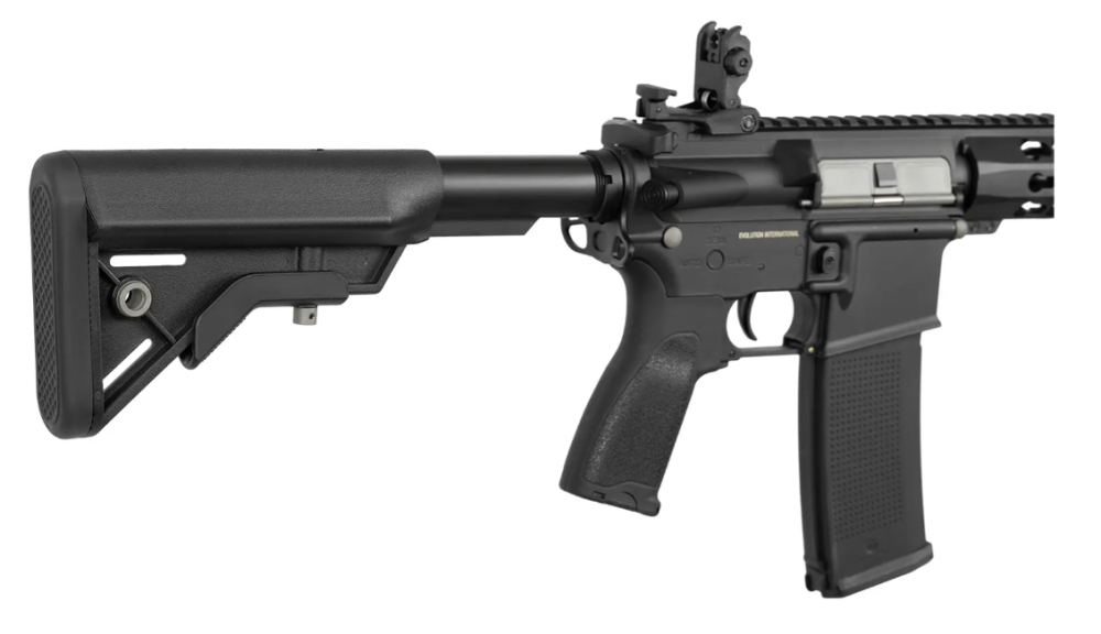 Линейка Evolution Recon Superlite совмещает современные технологии, продуманную эргономику и надежную внутреннюю конструкцию. Корпус изготовлен из прочного армированного полимера Carbontech, что обеспечивает легкость, ударопрочность и приятное матовое покрытие. Высокоточный внутренний ствол 6,01 мм в сочетании с роторной камерой Hop Up позволяет точно настраивать закручивание пули BB для повышения дальности и точности стрельбы.