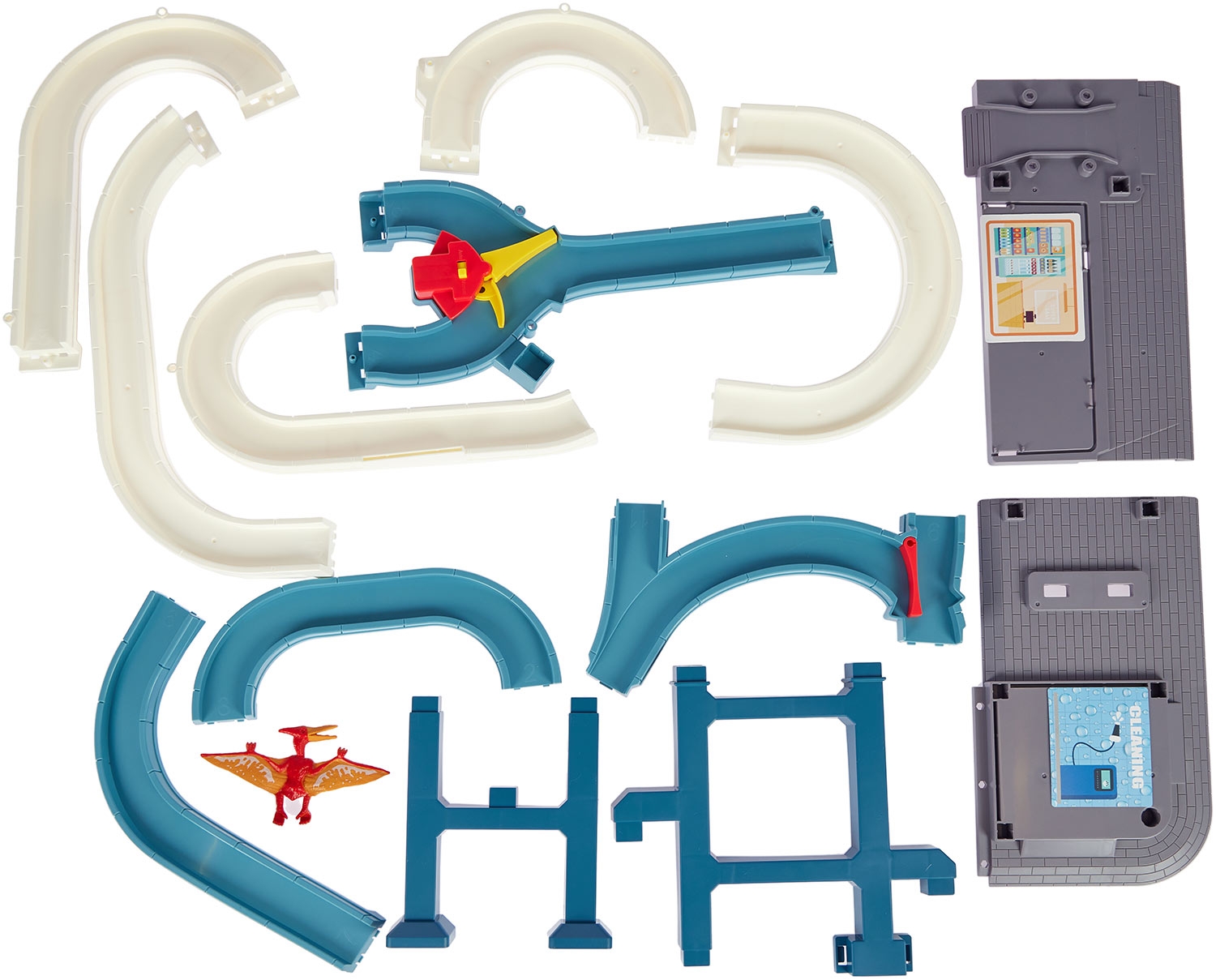 Наборы "Dino автотрек" — это комплекты с множеством деталей, которые делают игру интересной и способствуют развитию воображения и творческого мышления у детей. В набор входят элементы дороги, строения, дорожные знаки и другие аксессуары, способные заинтересовать любого ребёнка.