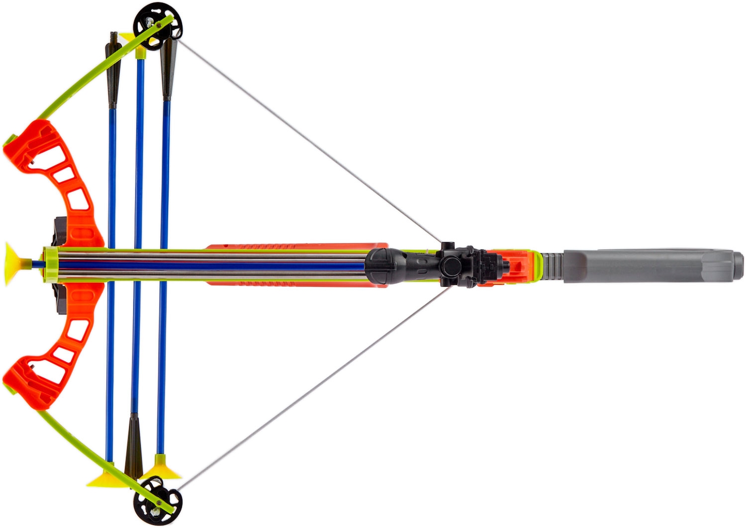 Игрушечный блочный арбалет ZIPP Toys с лазерным прицелом предназначен для активного досуга как в помещении, так и на открытом воздухе. Изделие изготовлено из прочного и безопасного материала. Конструкция арбалета визуально приближена к реальным моделям, при этом стрелы оснащены мягкими присосками, что обеспечивает безопасный игровой процесс. В комплект входят три стрелы.