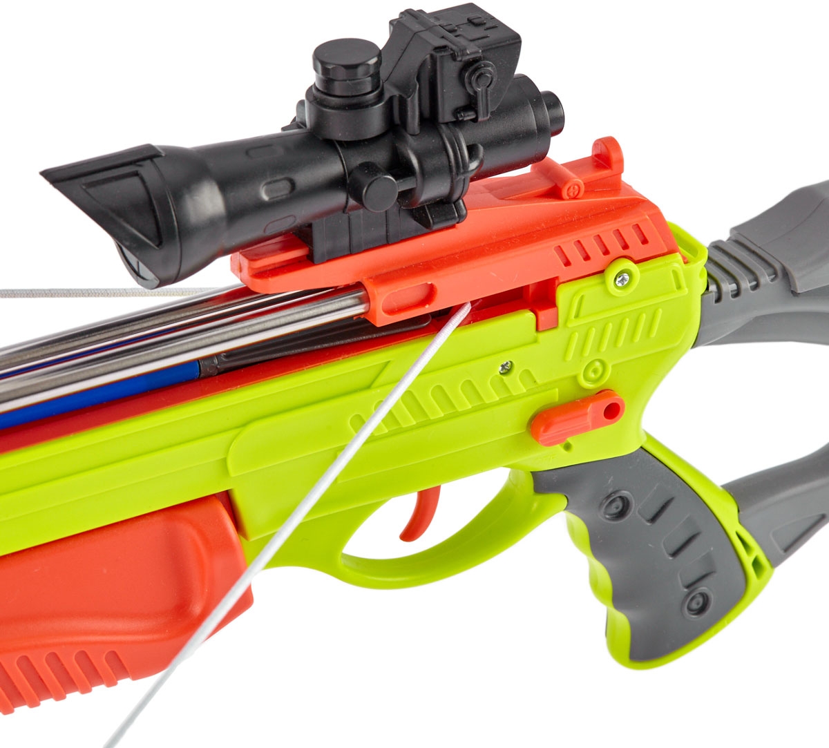 Для повышения точности прицеливания арбалет оборудован лазерным прицелом, работающим от трёх батареек AG10/LR1130 (в комплект не входят). Механический предохранитель предотвращает случайный выстрел.