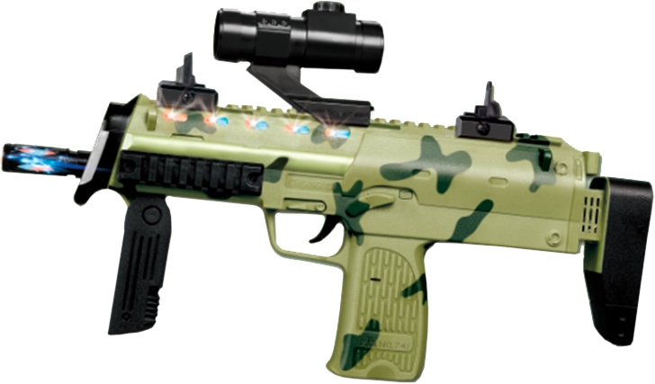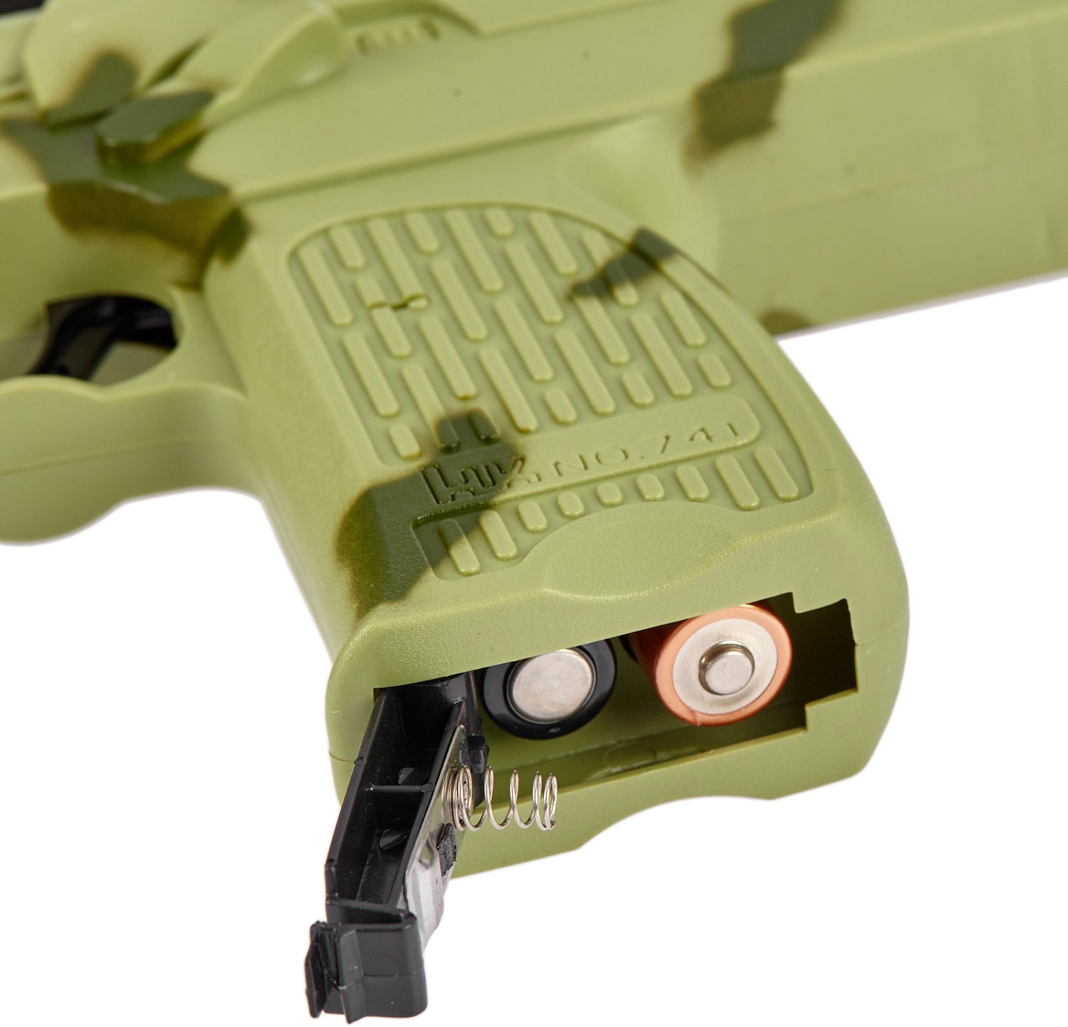 Свето-звуковой автомат «Отважный медведь» — безопасная и увлекательная игрушка для активных игр. Модель визуально повторяет боевой прототип, оснащена световыми эффектами, звуковым сопровождением и имитацией отдачи при нажатии на спусковой крючок. Игрушка дополнена складной ручкой для переноски и прицелом.