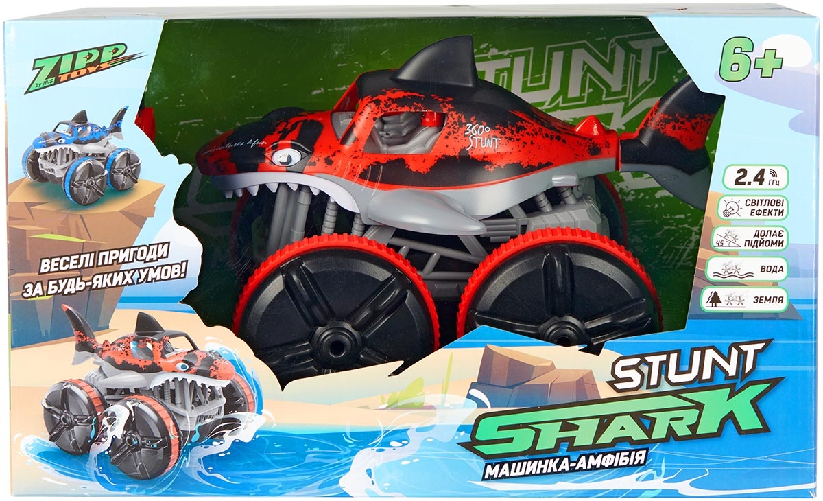 Машинка Shark от ZIPP Toys — это не просто радиоуправляемая модель, а полноценная амфибия, способная уверенно передвигаться как по суше, так и по мокрой поверхности.