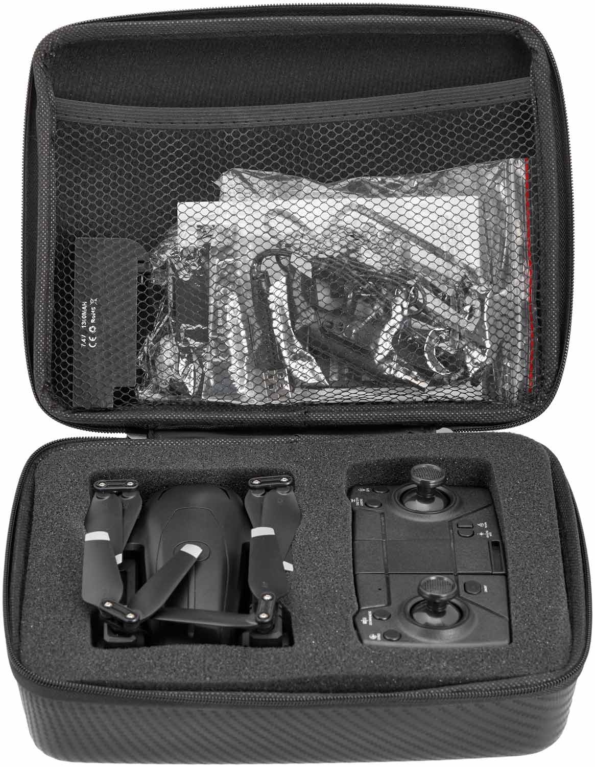 Дальность полёта достигает 200 метров, передача FPV — до 150 метров. Есть функция возврата одной кнопкой (в режиме Headless), удержание высоты, аварийная остановка и флипы на 360°. Для выполнения переворотов рекомендуется высота не менее 3 метров.