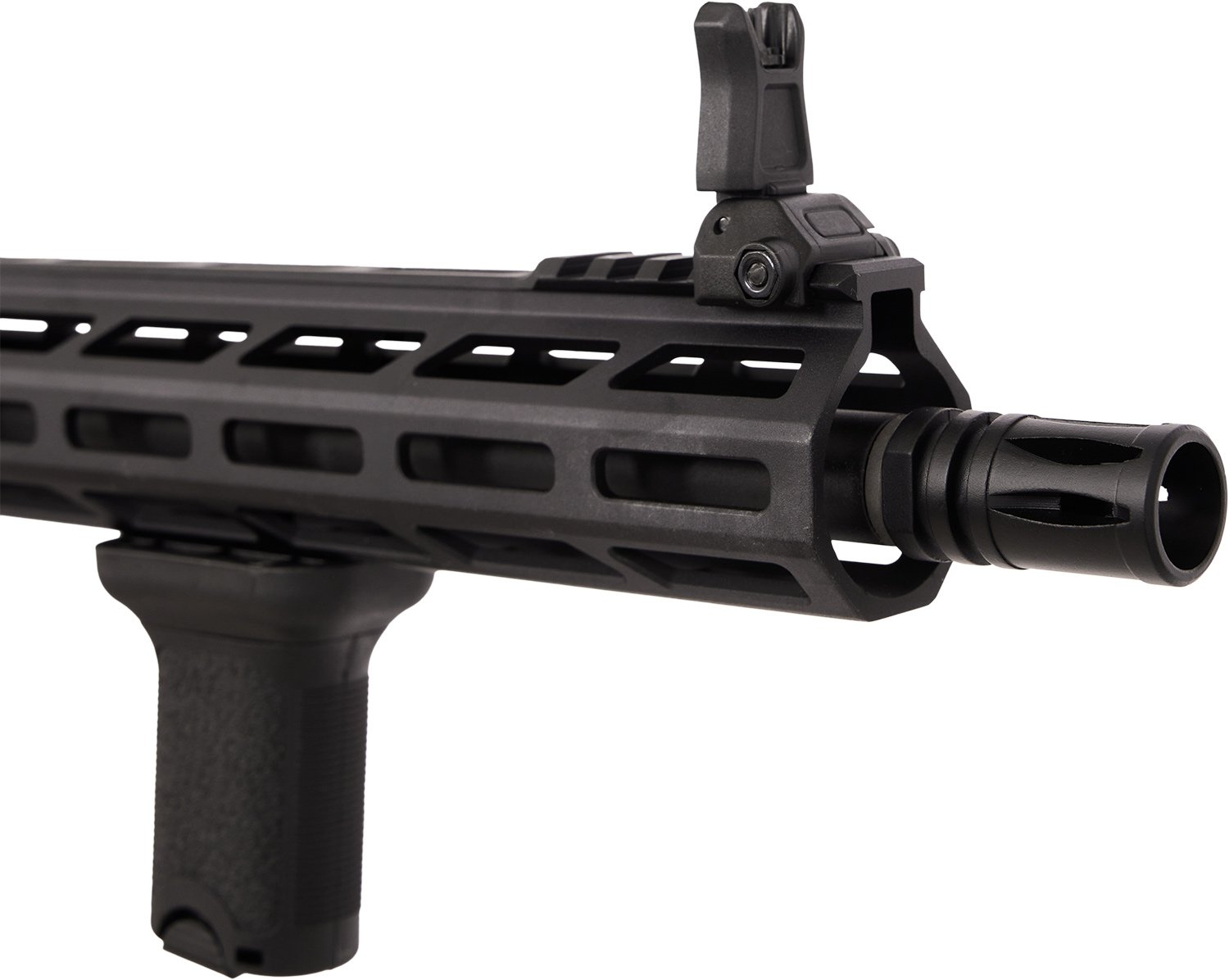 Цевьё EMR и ствол жёстко соединены с верхней частью ствольной коробки через новую стволовую гайку, изготовленную на станке с ЧПУ. Шесть стальных винтов обеспечивают прочность и отсутствие люфтов. Приклад крепится на алюминиевую буферную трубку, что надёжнее пластиковых аналогов.