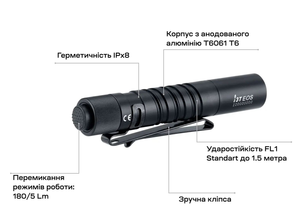 Заказать Фонарь Olight I3T EOS Black вы можете на сайте NA MUSHKE! или по телефону у наших менеджеров. Мы осуществляем доставку товаров Olight по всей территории Украины (кроме временно оккупированных): Киев, Харьков, Одесса, Днепр, Запорожье, Львов, Кривой Рог, Николаев, Винница, Херсон, Полтава, Чернигов, Черкассы, Житомир, Сумы, Хмельницкий, Черновцы, Ровно, Каменское, Кропивницкий, Ивано-Франковск, Кременчуг, Тернополь, Луцк, Белая Церковь, Краматорск, Мелитополь, Никополь, Славянск, Ужгород, Каменец-Подольский, Бровары, Конотоп, Умань, Мукачево, Александрия, Дрогобыч, Нежин, Измаил, Новомосковск, Ковель, Смела, Червоноград, Калуш, Первомайськ, Коростень, Коломыя, Борисполь, Стрый, Нововолынск, Горишние Плавни, Изюм, Белгород-Днестровский, Ахтырка, Марганец, Фастов, Лубны, Жёлтые Воды, Светловодск, Ирпень, Шепетовка, Ромны, Миргород, Подольск, Южноукраинск, Владимир-Волынский, Дубно, Вишнёвое.