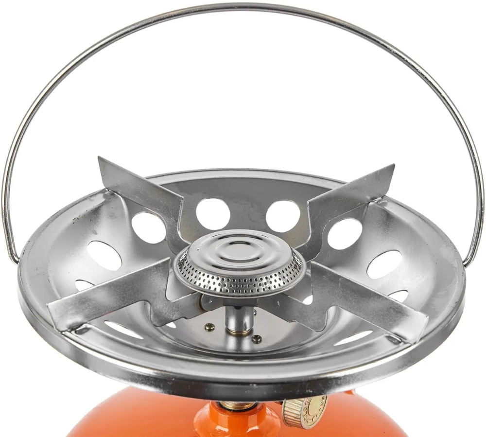 Баллон выполнен из прочного металла. Горелка оснащена качественным латунным вентилем и съемным рассекателем. Баллон поставляется пустым. Для использования его необходимо заправить на специализированных газовых автозаправках. Для удобства при переноске, предусмотрена удобная ручка на корпусе и петля на горелке.