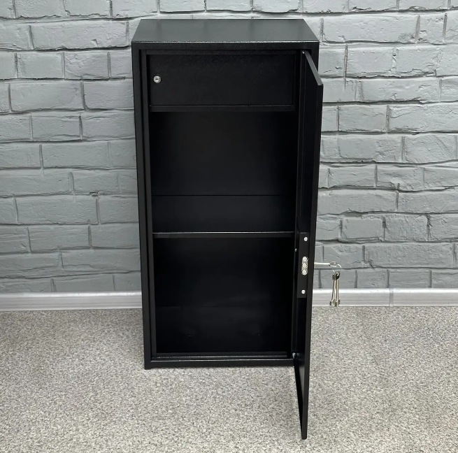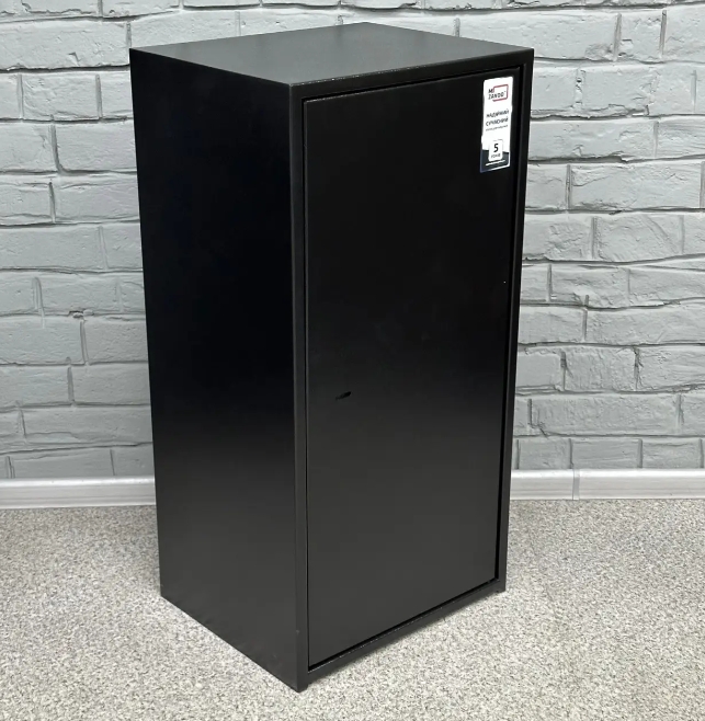 Сейф окрашен порошковой краской, что придает ему приятный вид и защищает от коррозии. Цвета на выбор: серый (RAL 7046), черный (RAL 9005)